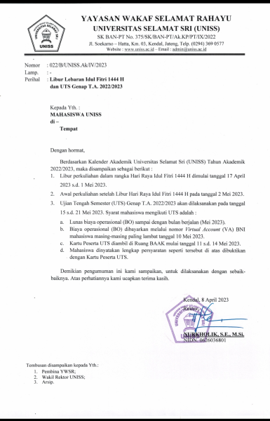 Universitas Selamat Sri Kendal Mengucapkan Selamat Hari Raya Idul Fitri 1444 Hijriah